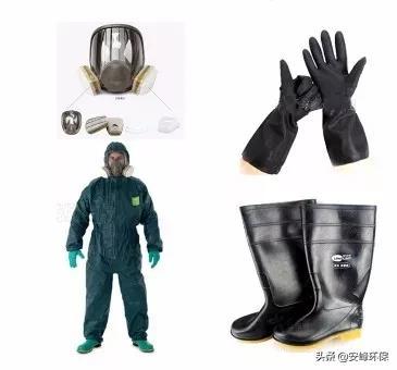 防化服、全面罩、工作服、口罩、防护眼镜、胶皮手套、围裙;